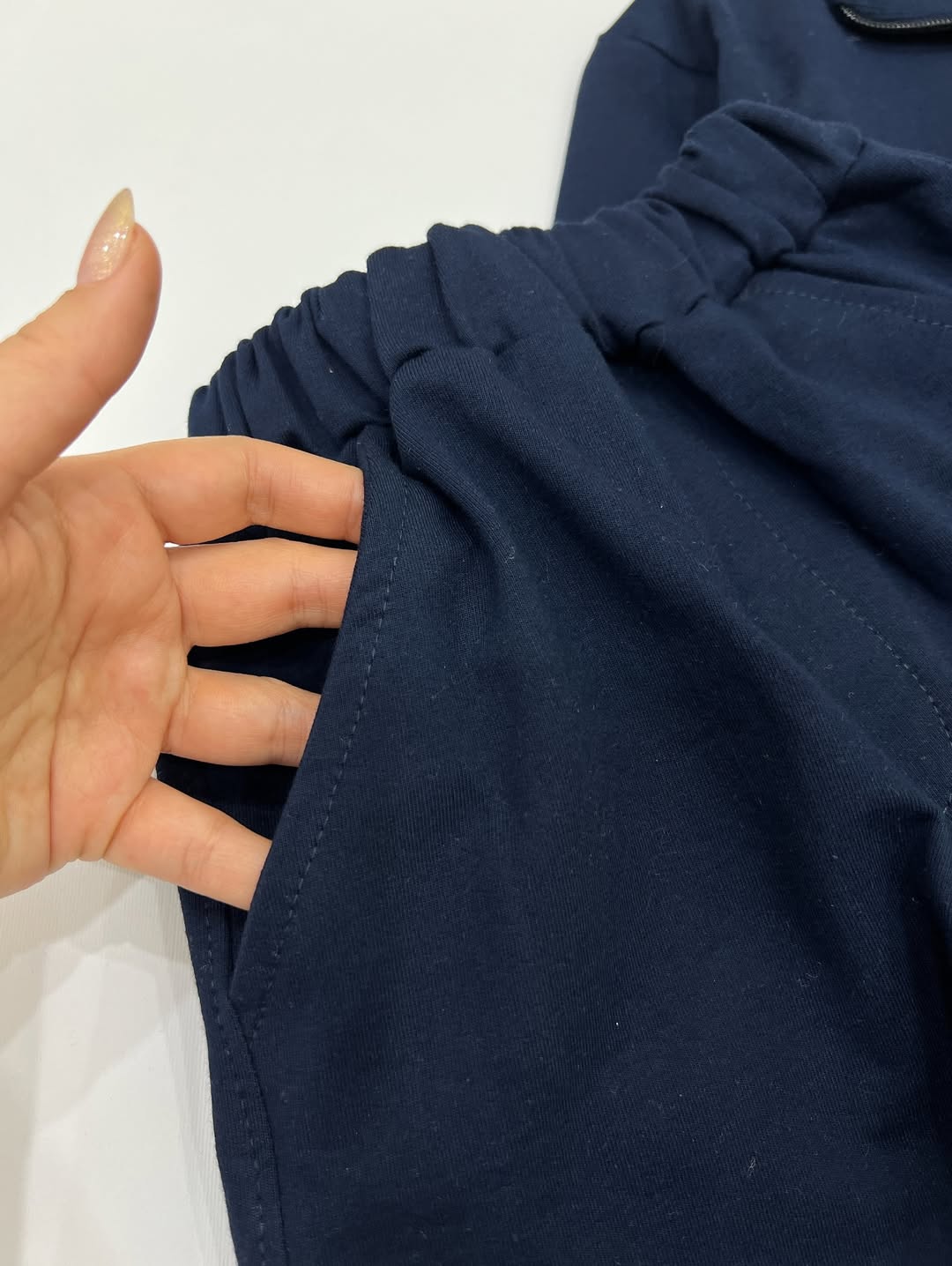 سویشرت شلوار جذاب و اسپرت با تنخوری شیک، مناسب بیرون و مدرسه یقه دو مدل میشه هم گردن میپوشونه و هم حالت نیم ریپ یقه مردونه. جنس نه پنبه دورس مناسب ۲/۵ تا ۱۱سال.